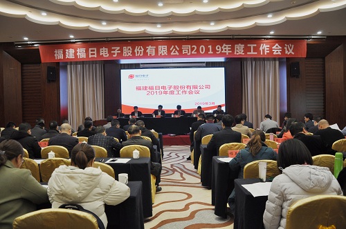 2019年3月7日-8日,福建福日電子股份有限公司在福州市召開2019年度工作會議。公司經(jīng)營班子成員,本部各部(室)負(fù)責(zé)人,各成員企業(yè)、事業(yè)部主要負(fù)責(zé)人及代表,參股企業(yè)產(chǎn)權(quán)代表及派出財(cái)務(wù)負(fù)責(zé)人等共計(jì)80多人出席會議。