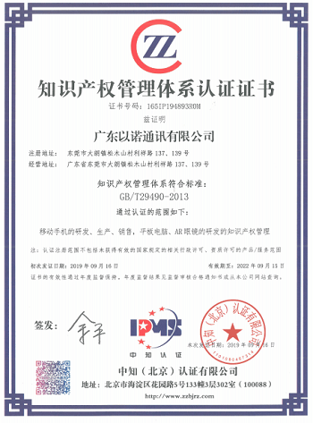 2019年9月,福日電子成員企業深圳市中諾通訊有限公司、廣東以諾通訊有限公司先后通過知識產權管理體系認證,進一步推進公司知識產權管理工作規范化、系統化、科學化,提升企業核心競爭力。