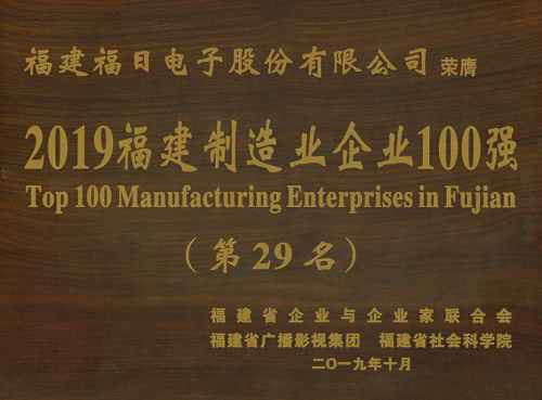 2019年10月24日,由福建省企業(yè)與企業(yè)家聯(lián)合會、福建省社會科學院、福建省廣播影視集團共同舉辦的2019年福建企業(yè)100強研究發(fā)布會在福建漳州舉行,福建福日電子股份有限公司入選2019福建制造業(yè)企業(yè)100強。福日電子總裁溫春旺受邀參會。