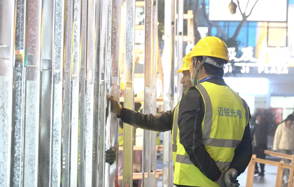 拉起圍擋,建起腳手架,拆除舊屏,搭建鋼結(jié)構(gòu),吊裝與拼接新屏箱體……歷時(shí)1300小時(shí),由福日電子成員企業(yè)邁銳光電打造的又一重磅潮流城市地標(biāo)南京首塊雙4K全面超高清大屏——“珠江1號(hào)巨幕&Bigger Tang”地標(biāo)巨幕煥新而生,十歲的長(zhǎng)窄型大屏成為過(guò)去式,雙4K超高清裸眼3D大屏正式登場(chǎng)。