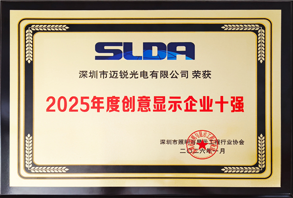 1月6日,以“未來之光·鏈接世界”為主題的深圳市照明與顯示工程行業協會(SLDA)十周年年會在深圳舉行。會上,福日電子成員企業邁銳光電憑借在創意顯示領域的持續創新與成熟應用,成功入選“2025年度創意顯示企業十強”,獲行業專家與市場客戶的高度認可。